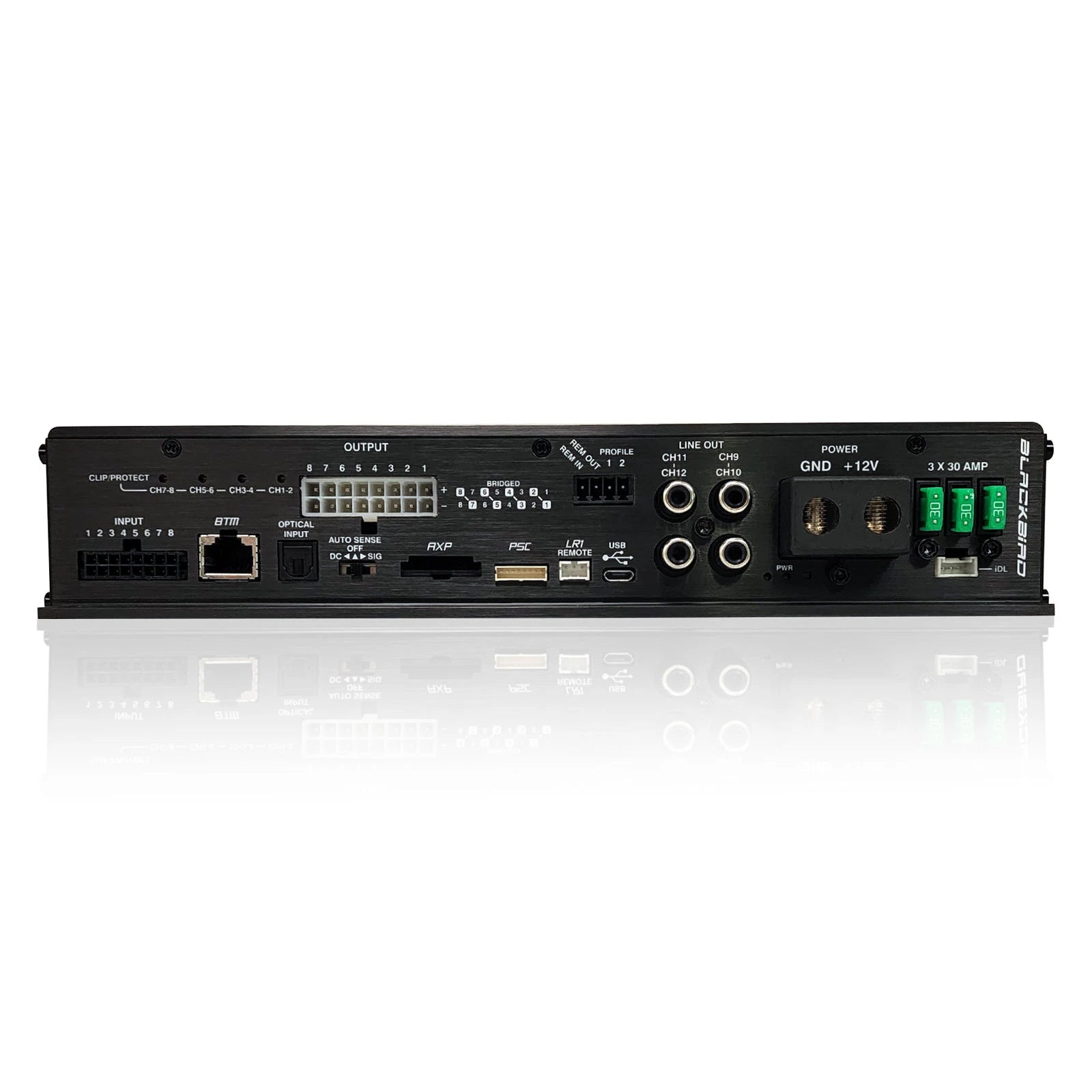 8-Channels @ 4-Ohms (Ch 1-8)75 Watts8-Channels @ 2-Ohms (Ch 1 - 8)125 Watts4-Channel @ 4-Ohms (Ch 1-4 Bridged)250 WattsAmplifier Frequency Response10Hz - 30kHzFuse3 x 30 AmpDSPBuilt InProcessor ResolutionFixed Point Native 32-BitsSample Rate96kHzAnalog Inputs8 ch. Differential in (RCA or Speaker Level)Input Sensitivity.5V - 32V RMSDigital InputsTOSLink & Digital Coaxial (Requires D.O.C. Adapter)Auto-sense Turn-OnYes, Signal & DC (BTL) (Uses Ch 1/2 Inputs Only)Outputs (RCA)4-Channels Dedicated DSP Control)Outputs Voltage (RCA)Up to 8VInput Impedance (rca)10k ohmsFrequency Response2Hz - 23.5kHzS/N Ratio 1V 1:1107.1dBS/N 4V 1:1108.dBdBOperating Voltage6V - 17.0V (Start Stop Compliance to 4.5V)Output Equalization444 Bands 1/3rd Octave (linkable) -or- 444 Bands variable Parametric EQOutput Equalization Resolution1/10th dB per step +20dB / -24dBOutput Signal DelayUp to 30ms per channel in .01ms increments (Fixed Point Delay)Input Signal MixerYes - 10-Channels In (Including Digital) x 12-Channels Out (Including Up-Mixer Out)Advanced Mixer (Output Signal Mixer / Required for 12-ch operation.)Yes, When SelectedEasy-to-use Mixer AssistantYesCrossoversPhase Correct AP/HP/LP/BP all channelsCrossover Slopes6dB, 12dB, 18dB, 24dB, 30dB, 36dB, 42dB, 48dB Slopes all bands all channelsCrossover TypesButterworth, Linkwitz-Riley, Bessel, Variable Q, Chebyshev (all channels all bands)Crossover selectable frequencies10Hz - 20kHz in .01 Hz increments)Output Signal up mixerYesInput Signal Equalization12-Bands Parametric (linkable) Per ChannelInput Equalization Resolution1/10th dB per step +20dB / -24dBInput Equalization All Pass FiltersYes - Individual per input EQ bandInput Signal DelayYes - Up to 11.04ms per channel inputPresetsUp to 4-PresetsHi-Res Bluetooth (Streaming Audio)Yes - Requires ARC BTD (Sold Separately)External Remote Level ControlYes (ARC PSC or LR1) (Sold as an accessory, not included)AXP WiFi control adapter cardExclusive to the Pro Series DSP's (Sold Separately)(COMING SOON)Preset selection without controller useYes - Optional manual trigger switches +/- for up to 4 presets (Not Included)Remote Turn-On Output ControlsTurn on Output (up to 40ms), Turn-on Hold (up to 40ms), Auto-sense hold time (up to 200ms)Remote Turn-On Output On/Off lead timing controlRemote on/off adjustable up to 40ms eachMaestro AR Module interface capableYes - Requires Maestro T-Harness and data cable for connectionExpansion Capability (12-CH, 24-CH, 36-CHBlackbirds can be ran in multiples with individual USB connections to a single PC with single operating software being usedSoftware Interface64 bit Windows 8, Windows 8.1 or Windows 10Dimensions10.35”(L) x 6”(W) x 2”(H)