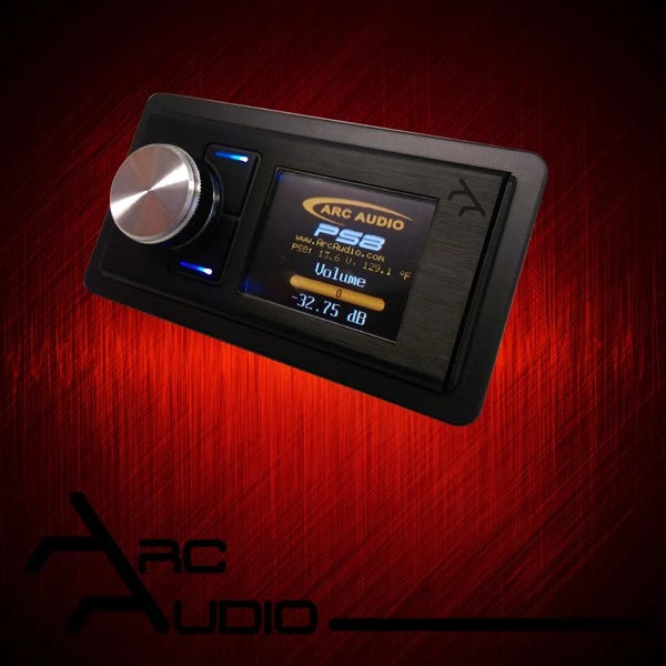 ControllerDigital Full FunctionVolume ControlYesSystem Muting/UnmutingYesSystem Fader/Balance ControlYes - Definable in the PS8 User SoftwareSub Level ControlYes - Definable in the PS8 User SoftwareCrossover ControlYes - Complete (Damping, Slope, Frequency, - All Channels)Equalizer Control (Ch 1-4)Yes - Full individual channel and global control of all Third Octave EQ controlsSignal Phase Control (Ch 5)Yes - 0/180 all channelsSystem Turn-On capability without source or auto-detectYes - Only when PSC and PS8, PS8-Pro, IPS8.8 or PS8-50 are combinedScreen TypeOLEDScreen/Button Orientation RotationYes- User definedDimmable LightingYes- Use DefinedDimmable Lighting TriggerYes- Via hardwired trigger on PS8Illumination and Display Lighting Color AdjustmentYes - User DefinedFirmware UpdatesDone thru the compatible ARC Audio processor software utilityDigital Serial Number EncryptionYes - Internal for tracking purposesDimensions- Cradle Mounting (Cutout)1.873"(H) x 3.46" (W) x .8"(D)Maximum Outer Dimensions3.841" (L) x 2.15" (W) x 1.38" (H, Control Knob Included)Other products required for operationYes - PS8, PS8-Pro, IPS8.8 or PS8-50