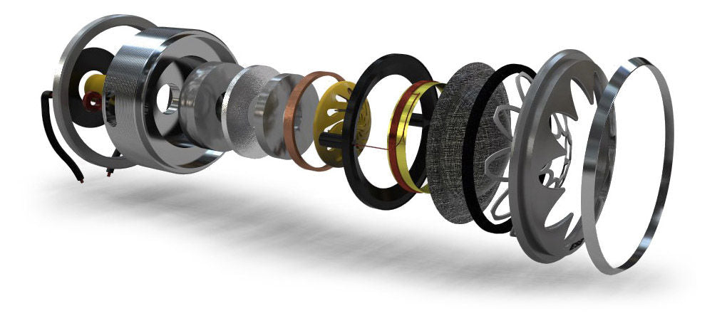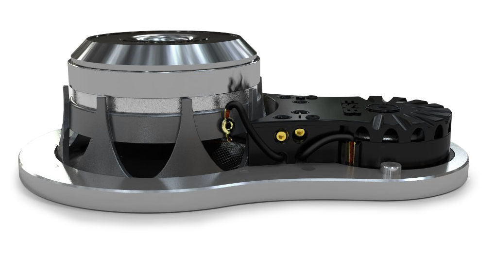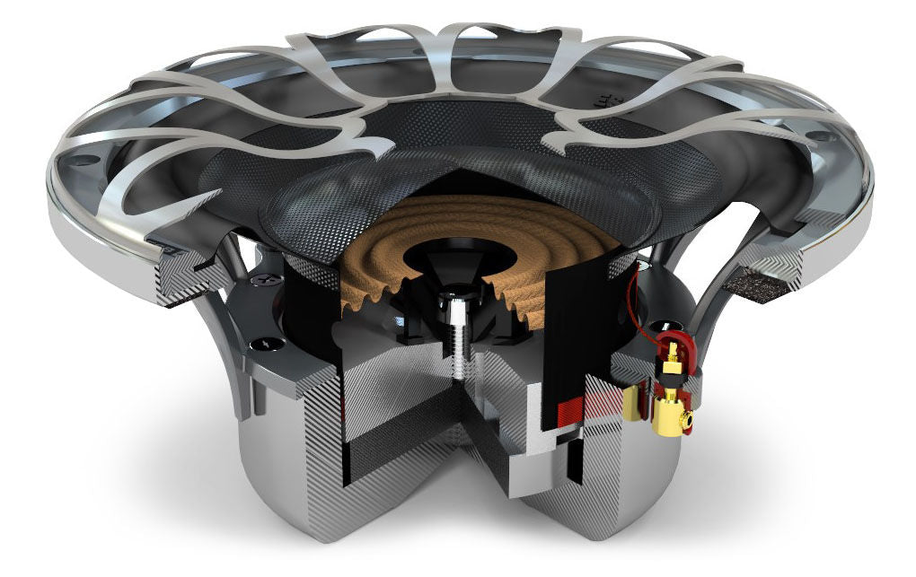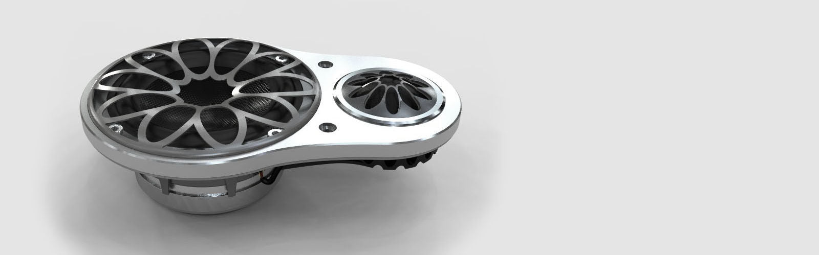 the particular flower shape of the flanges around the speaker dome, then also in the baskets of the cone