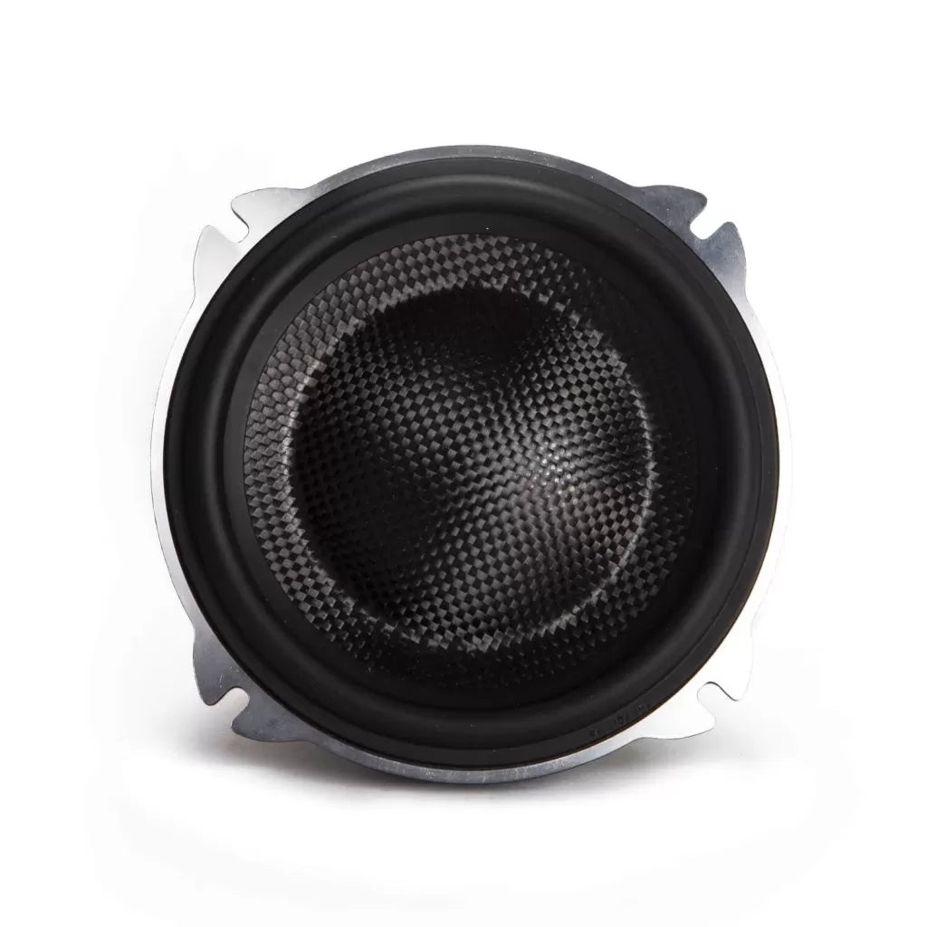 Not all drivers are created equal, and the visually inspiring Elate Carbon woofers were developed with next-level performance in mind. These new drivers get their Carbon moniker from their triple-layer cones from which they are derived, consisting of two layers of carbon fiber sandwiching a Rohacell foam core. These proprietary cones were developed to give them incredible stiffness, high damping and light weight—the trifecta for cone performance.