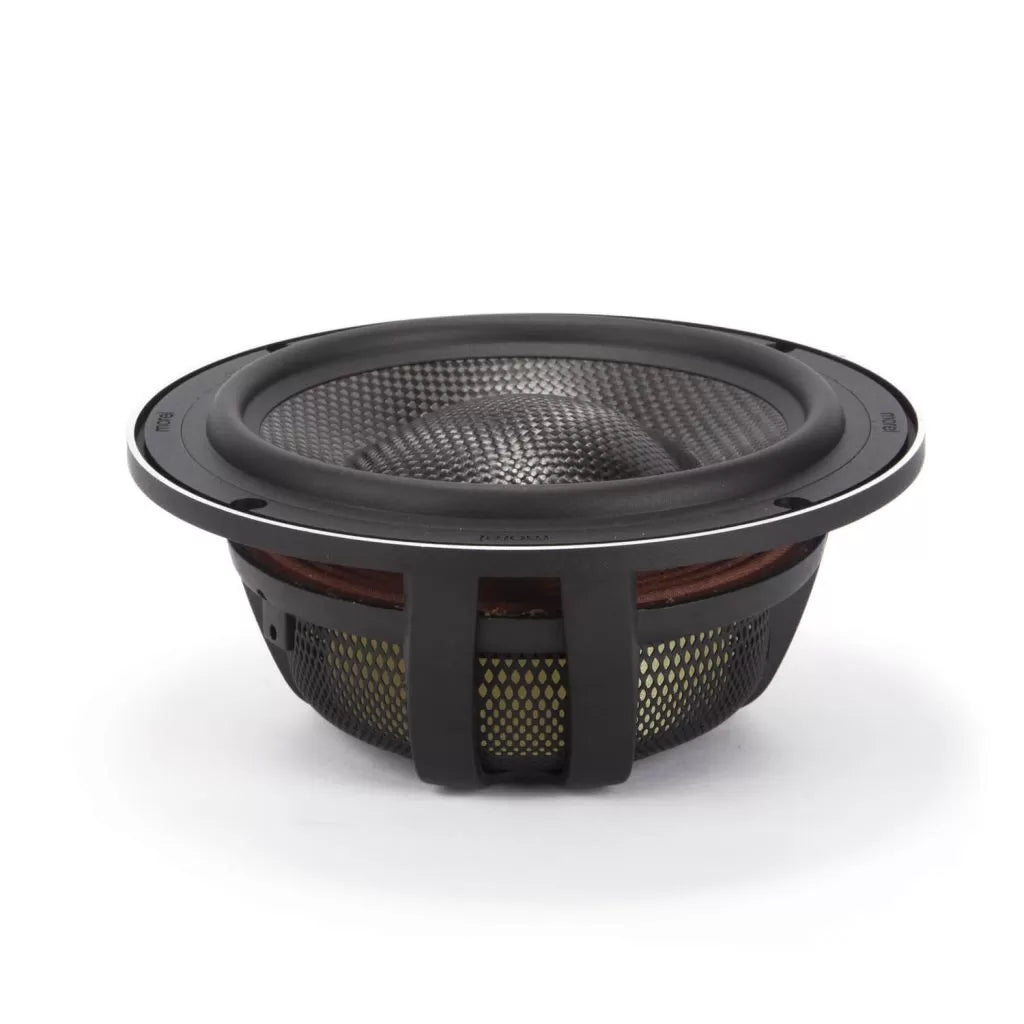 Not all drivers are created equal, and the visually inspiring Elate Carbon woofers were developed with next-level performance in mind. These new drivers get their Carbon moniker from their triple-layer cones from which they are derived, consisting of two layers of carbon fiber sandwiching a Rohacell foam core. These proprietary cones were developed to give them incredible stiffness, high damping and light weight—the trifecta for cone performance.