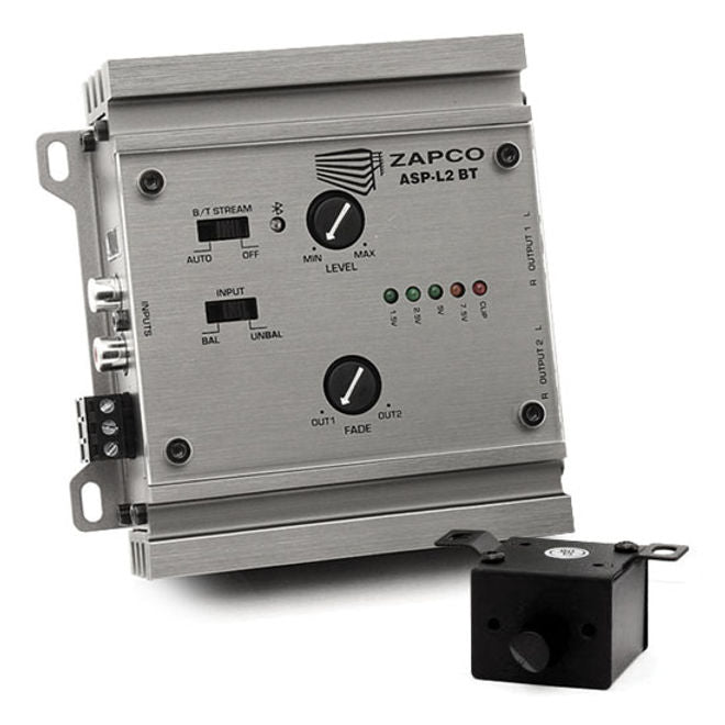 Bluetooth Streaming : The ASP-L2 BT is not just an awesome 9.5V RMS line driver. It is also a Bluetooth input for your sound system. The L2 BT also comes with a dash remote level control so you can match the level of your Bluetooth device and the level of your head unit and use the L2 BT remote as your system volume control.